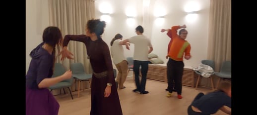 The participants were invited to practice and reflect on their ability to be present and patient and to provide space for one another (work in couples was a crucial part of the workshop), which on a greater scale corresponds to having mutual respect for one another and allowing everyone to have their own opinions and ideas.